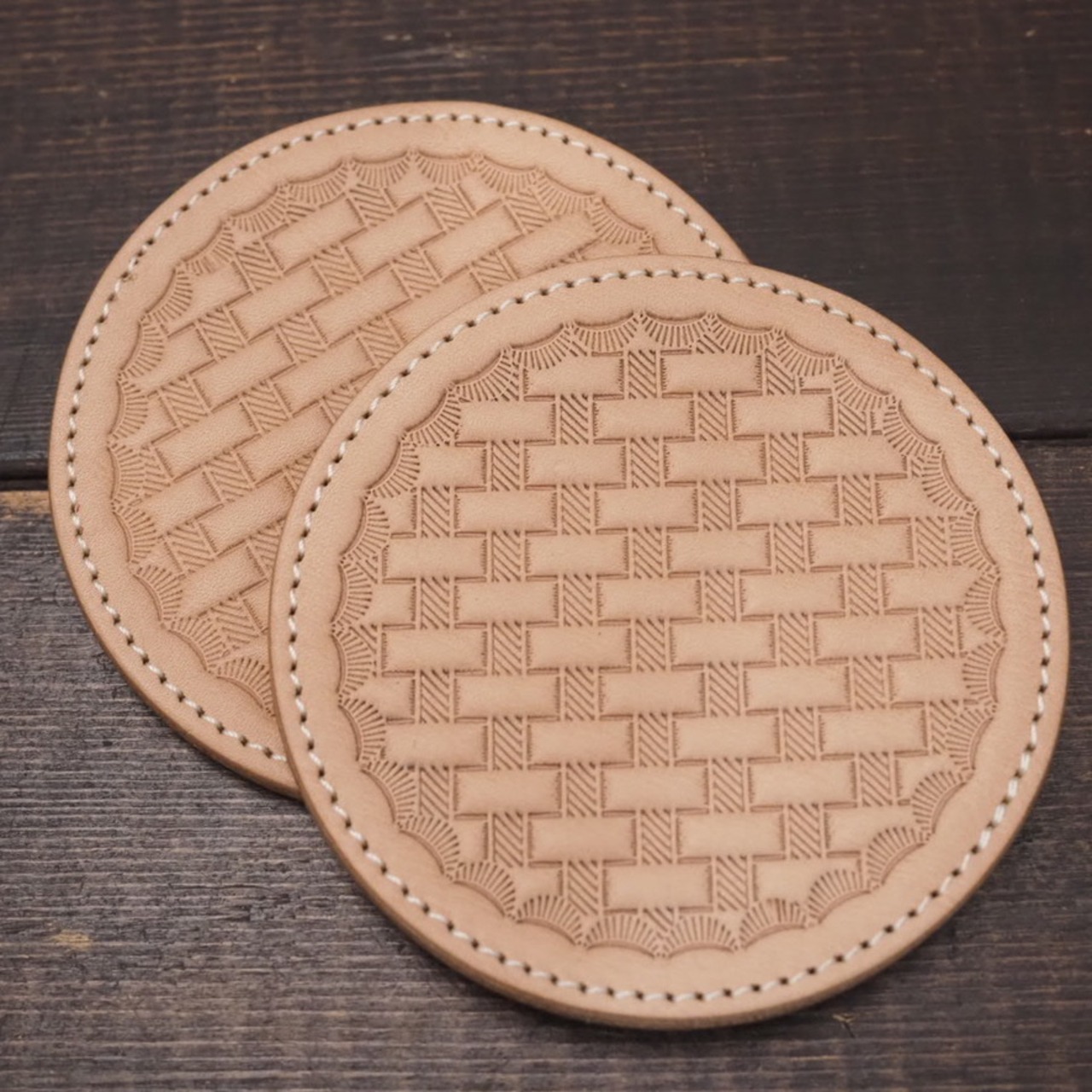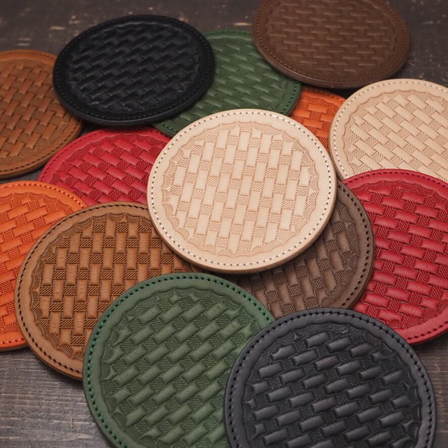 レザーコースター 栃木レザー バスケットウィーブ 本革